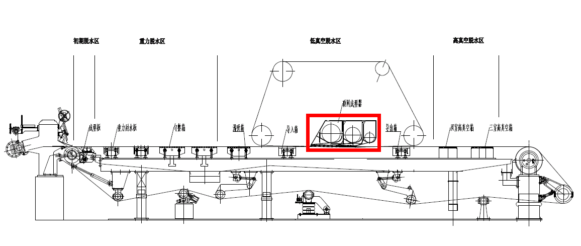 Верхний формирователь является частью проволочной части ПМ. Он устанавливается между коробами пониженного давления и всасывания, примерно во второй трети проволочного стола. Его наиболее важной частью является трехкамерная всасывающая камера с разными значениями разрежения в отдельных камерах. Через сепараторы эта всасывающая коробка соединяется с вакуумной системой.